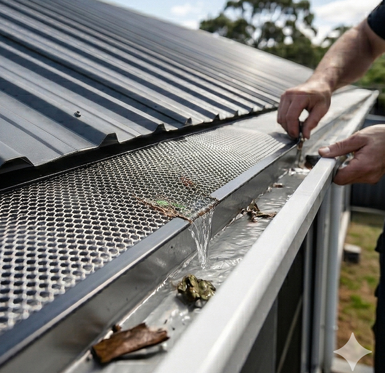Gutter guards prevent leaves and gum nuts from clogging your drainage system, which is essential for preventing water overflow into your eaves during Brisbane's intense storm season.